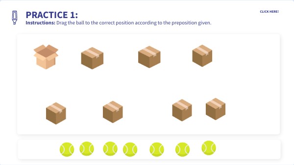Instructions: Drag the ball to the correct position according to the preposition given.