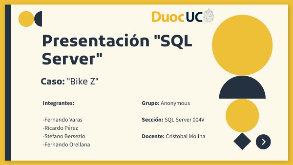 Grupo: Anonymous Sección: SQL Server 004V Docente: Cristobal Molina