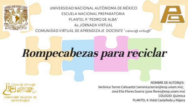NOMBRE DE AUTOR@S: Verónica Torres Cahuantzi (veronica.torres@enp.unam.mx); José Elio Flores Guerra (jose.flores@enp.unam.mx)COLEGIO: QuímicaPLANTEL 4: Vidal Castañeda y Nájera