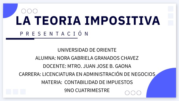 UNIVERSIDAD DE ORIENTE ALUMNA: NORA GABRIELA GRANADOS CHAVEZ DOCENTE: MTRO. JUAN JOSE B. GAONA CARRERA: LICENCIATURA EN ADMINISTRACIÓN DE NEGOCIOS MATERIA: CONTABILIDAD DE IMPUESTOS 9NO CUATRIMESTRE