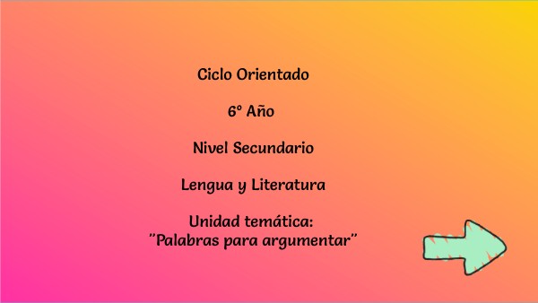 Ciclo Orientado 6º Año Nivel Secundario Lengua y Literatura Unidad temática: "Palabras para argumentar"