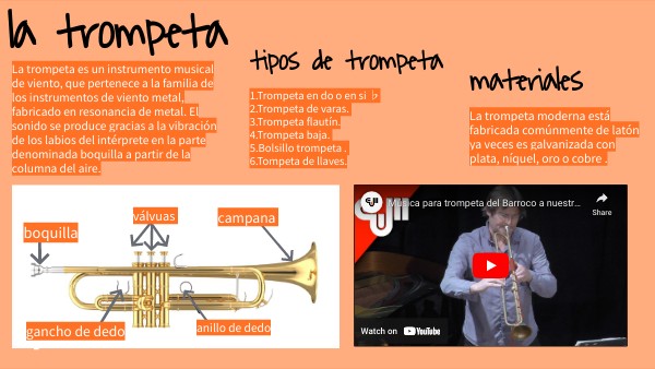 1.Trompeta en do o en si ♭2.Trompeta de varas. 3.Trompeta flautín. 4.Trompeta baja. 5.Bolsillo trompeta . 6.Tompeta de llaves.