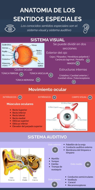 Los conocidos sentidos especiales son el sistema visual y sistema auditivo