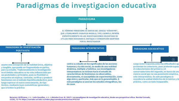 Recursos: Gil Álvarez, J. L., León González, J. L., y Morales Cruz, M. (2017). Los paradigmas de investigación educativa, desde una perspectiva crítica. Revista Conrado, 13(58), 72-74. https://conrado.ucf.edu.cu/index.php/conrado/article/view/476/510