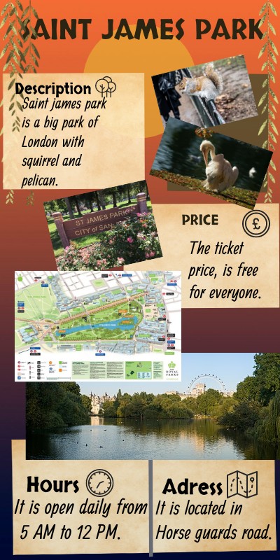 Saint james park is a big park of London with squirrel and pelican.