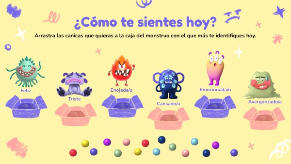 Arrastra las canicas que quieras a la caja del monstruo con el que más te identifiques hoy.