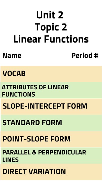 Algebra - Unit 2 Topic 2 Foldable