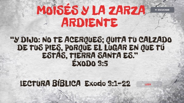 En la historia de hoy podemos ver la obra de Dios de una forma que no nos podríamos siquiera imaginar, Dios se presentó ante Moisés a través de una zarza ardiente que no se quemaba, Dios tiene el poder de hablarnos de cualquier forma porque Él es dueño y creador de todas las cosas. En la actualidad Dios nos habla principalmente a través de su palabra, la Biblia, pero puede usar otros medios para comunicarse con nosotros, claro que Dios nunca se contradice a sí mismo por esto todo va alineado a la Biblia.