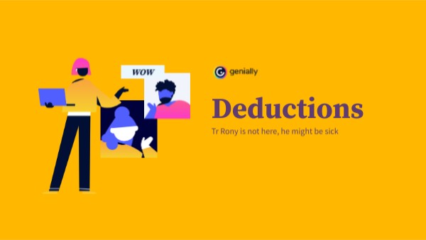 Example: "You hear a loud voice outside of the classroom" It could be teacher Rony because he has a strong voice.