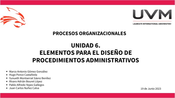 UNIDAD 6. ELEMENTOS PARA EL DISEÑO DE PROCEDIMIENTOS ADMINISTRATIVOS