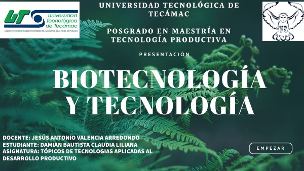 DOCENTE: JESÚS ANTONIO VALENCIA ARREDONDO ESTUDIANTE: DAMIAN BAUTISTA CLAUDIA LILIANA ASIGNATURA: TÓPICOS DE TECNOLOGIAS APLICADAS AL DESARROLLO PRODUCTIVO
