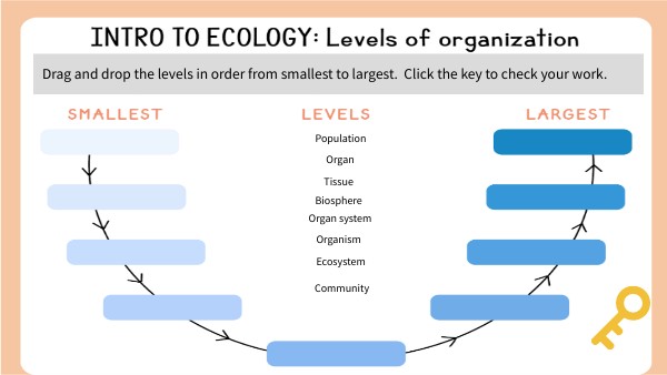 Drag and drop the levels in order from smallest to largest. Click the key to check your work.