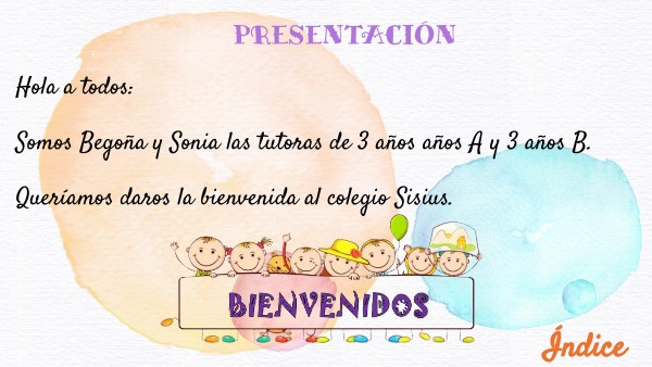 Hola a todos: Somos Begoña y Sonia las tutoras de 3 años años A y 3 años B. Queríamos daros la bienvenida al colegio Sisius.