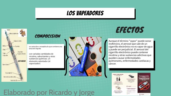 con variadas cantidades de nicotina, saborizantes y otras sustancias químicas. un elemento calentador (el vaporizador)