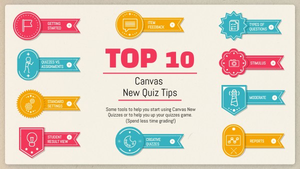Some tools to help you start using Canvas New Quizzes or to help you up your quizzes game. (Spend less time grading!)
