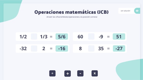 Arrastra las cifras/símbolos/operaciones a la posición correcta