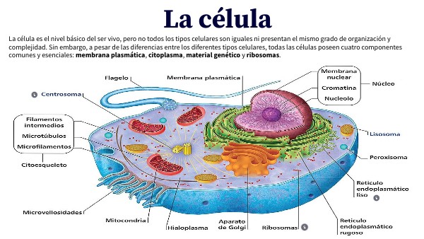 La célula es el nivel básico del ser vivo, pero no todos los tipos celulares son iguales ni presentan el mismo grado de organización y complejidad. Sin embargo, a pesar de las diferencias entre los diferentes tipos celulares, todas las células poseen cuatro componentes comunes y esenciales: membrana plasmática, citoplasma, material genético y ribosomas.
