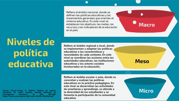 Fuente: Flores-Crespo, P. (20011). Análisis de política educativa. Un nuevo impulso. Revista Mexicana de Investigación Educativa, 16, (50), 667-698. https://www.scielo.org.mx/pdf/rmie/v16n50/v16n50a2.pdf
