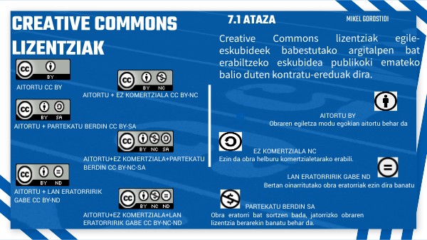 Creative Commons lizentziak egile-eskubideek babestutako argitalpen bat erabiltzeko eskubidea publikoki emateko balio duten kontratu-ereduak dira.