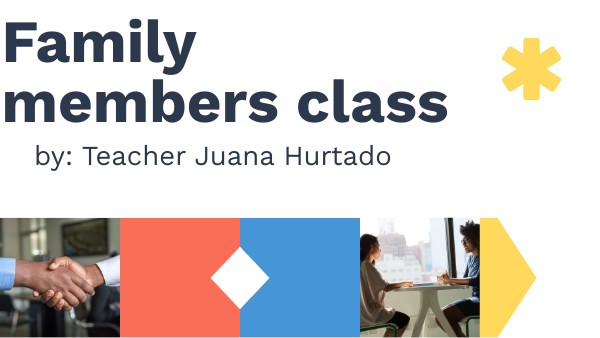 Mother: A female parent Father: A male parent Son: A male child Daughter: A female child Sister: A girl or woman who has one or both of the same parents as you Brother: A boy or man who has one or both of the same parents as you