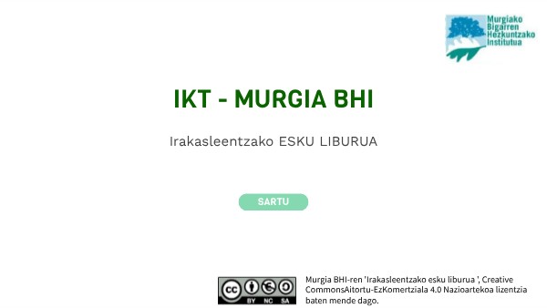 Murgia BHI-ren 'Irakasleentzako esku liburua ', Creative CommonsAitortu-EzKomertziala 4.0 Nazioartekoa lizentzia baten mende dago.