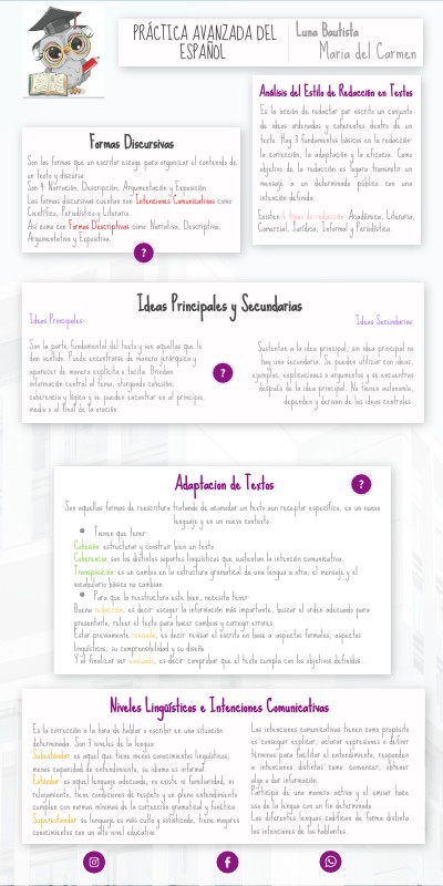 Buena redacción, es decir: escoger la información más importante, buscar el orden adecuado para presentarlo, releer el texto para hacer cambios y corregir errores. Estar previamente revisado, es decir: revisar el escrito en base a: aspectos formales, aspectos lingüísticos, su comprensibilidad y su diseño. Y al finalizar ser evaluado, es decir: comprobar que el texto cumpla con los objetivos definidos..Niveles Lingüísticos e Intenciones Comunicativas