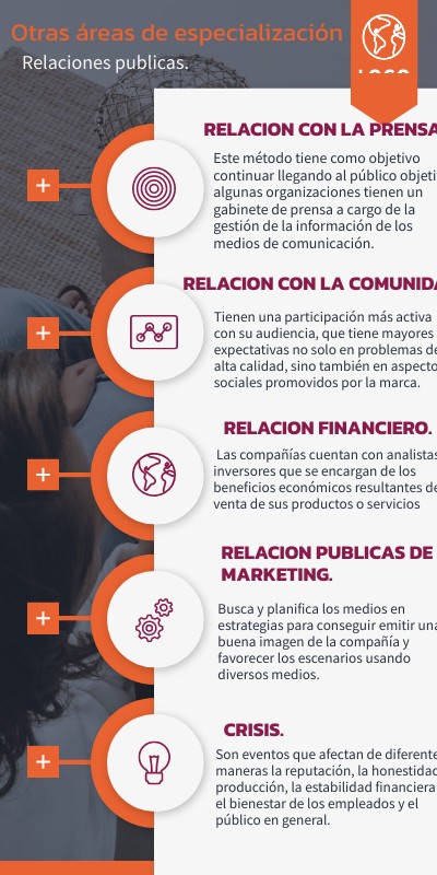 Busca y planifica los medios en estrategias para conseguir emitir una buena imagen de la compañía y favorecer los escenarios usando diversos medios.