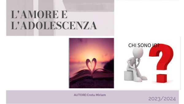In questa presentazione gli articoli trattati saranno:di quando l'amore inizia a manifestarsi,delle sensazioni e gli effetti che crea,amore corrisposto o spezzato,i baci più famosi nell'arte,le coppie di amanti nella storia,l'amore è una teoria,l'amore nella letteratura,i luoghi più romantici,le frasi inglesi e francesi che parlano di amore e le canzoni e i brani ispirati a questo sentimento.