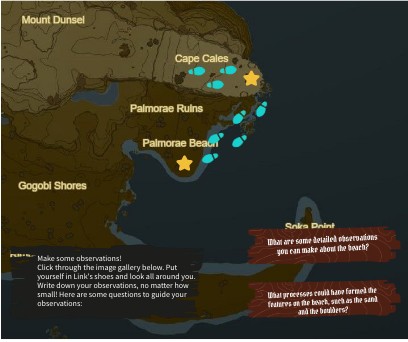 Make some observations! Click through the image gallery below. Put yourself in Link's shoes and look all around you. Write down your observations, no matter how small! Here are some questions to guide your observations: