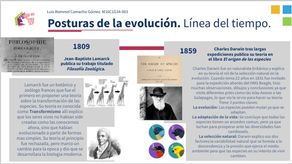 Charles Darwin fue un naturalista británico y explica en su teoría el rol de la selección natural en la evolución. Cuando tenia 22 años en 1831 fue invitado para la expedición abordo del HMS Beagle, hizo muchas observaciones, dibujos y conclusiones ya que visito diferentes prtes como las islas Azores o las Galapagos, lo que vio le sirvio para hacer su teoría. Tiene 3 puntos claves:La evolución: Las especies pueden mutar ya que se adaptan. La adaptación de la vida: Se concluye que todas las especies tienen un ancestro comun, pero ya que luchan para prosperar ante las diversidades han cambieado. La selección natural: Darwin explico sus dos factores:la variabilidad natural que se hereda a la descendencia y la presión que ejerce el medio ambiente para que las especies en su intento de vivir cambien.