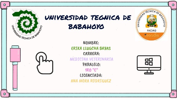 NOMBRE: ERIKA LLUGCHA BAYAS CARRERA: MEDICINA VETERINARIA PARALELO: 1RO "C" LICENCIADA: ANA MORA RODRIGUEZ