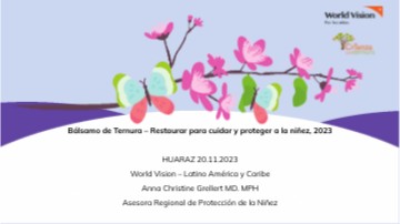 Bálsamo de Ternura – Restaurar para cuidar y proteger a la niñez, 2023 HUARAZ 20.11.2023 World Vision – Latino América y Caribe Anna Christine Grellert MD. MPH Asesora Regional de Protección de la Niñez