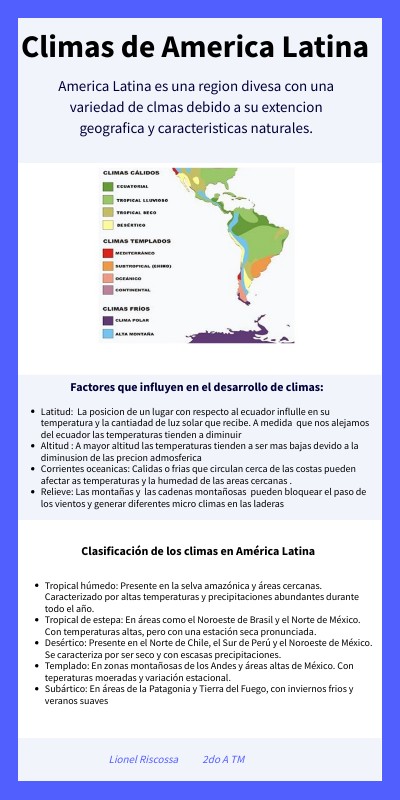 America Latina es una region divesa con una variedad de clmas debido a su extencion geografica y caracteristicas naturales.
