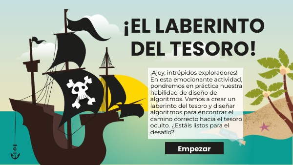 ¡Ajoy, intrépidos exploradores! En esta emocionante actividad, pondremos en práctica nuestra habilidad de diseño de algoritmos. Vamos a crear un laberinto del tesoro y diseñar algoritmos para encontrar el camino correcto hacia el tesoro oculto. ¿Estáis listos para el desafío?