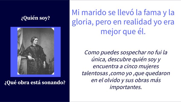 Como puedes sospechar no fui la única, descubre quién soy y encuentra a cinco mujeres talentosas ,como yo ,que quedaron en el olvido y sus obras más importantes.