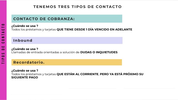 Quiere negociar y pagar, pero de momento no da promesa o compromiso, ya sea por que esta ocupado o no puede atender o bien no tiene la seguridad de contar con fondos en una fecha específica. Tipificación - Con intención de pago falta concretar negociación: