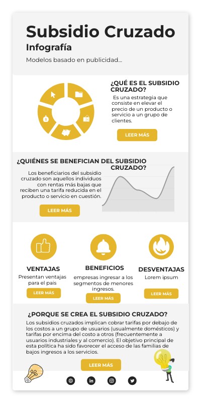 Entre las ventajas del subsidio cruzado destacan: Permite a las empresas ingresar a los segmentos de menores ingresos. Es útil para las compañías (usualmente estatales) de agua y electricidad. Con esa estrategia, pueden costear los servicios ofrecidos a sectores que demandan una mayor inversión inicia