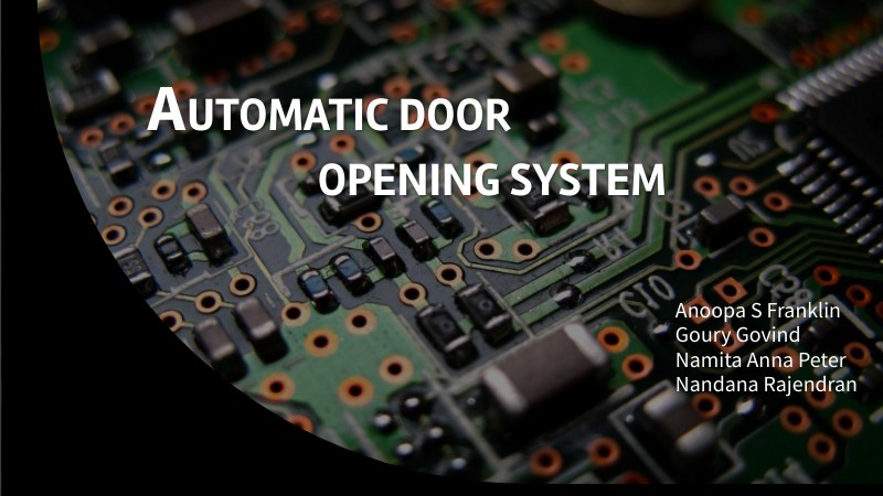 An automatic door opening system makes use of proximity IR sensor to open the door when a person Comes nearby and closes the door as the person moves away using a servo motor