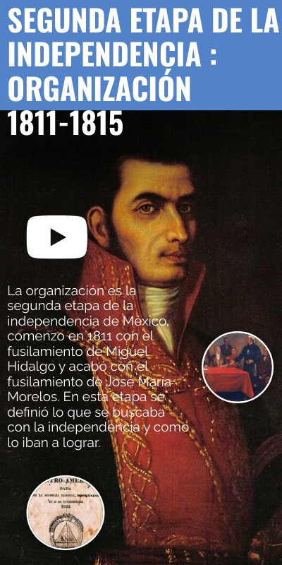 La organización es la segunda etapa de la independencia de México, comenzo en 1811 con el fusilamiento de Miguel Hidalgo y acabó con el fusilamiento de José María Morelos. En esta etapa se definió lo que se buscaba con la independencia y como lo iban a lograr.