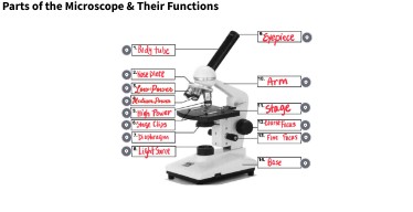 Adjusts the focus of the microscope. These knobs increase or decrease the level of detail seen when looking at the slide or specimen through the eyepiece of the compound microscope.