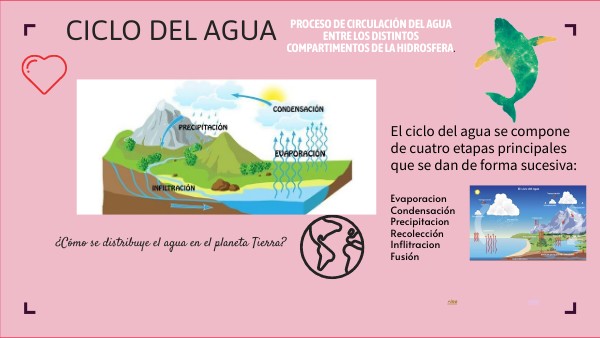 El ciclo del agua se compone de cuatro etapas principales que se dan de forma sucesiva: