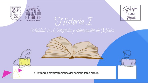 Textos:Delgado de Cantú. Gloria M. (2018). Historia de México 1. México: Pearson. Jaramillo H. Gerardo. (2008). Nueva Historia Mínima de México. México: El Colegio de México. Sánchez, H.(2010). Historia de México 1. México. Pearson Sosa, M. y Suazo A. (2016). Historia de México 1. México. SEP