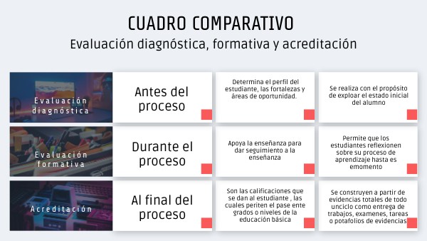 Evaluación diagnóstica, formativa y acreditación