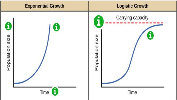 The population eventually reaches a carrying capacity, which is the population size that can be sustained over time in a given environment. The carrying capacity varies population to population and can also change over time as the environment changes. In nature, populations often overshoot and then undershoot the carrying capacity before eventually stabilizing at the carrying capacity.