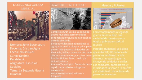 Nombre: John BetancourtDocente: Cristian AgilaFecha: 2023/06/29 Curso: Decimo Paralelo: A Asignatura: Estudios Sociales Tema: La Segunda Guerra Mundial