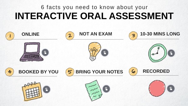 The Interactive Oral Assessment will be recorded so that Markers/Tutors can moderate and check that marking is fair.
