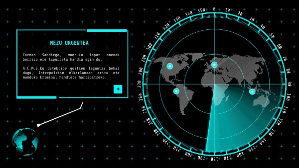 Carmen Sandiego, munduko lapur onenak berriro ere lapurreta handia egin du. A.C.M.E.ko detektibe guztien laguntza behar dugu, Interpolekin elkarlanean aritu eta munduko kriminal handiera harrapatzeko.