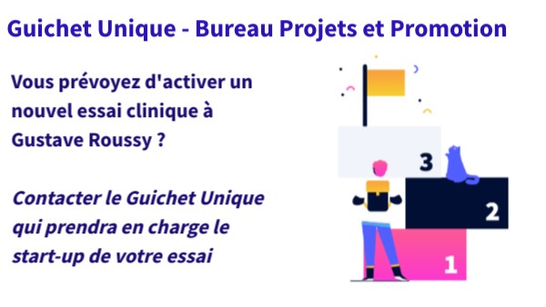 Vous prévoyez d'activer un nouvel essai clinique à Gustave Roussy ? Contacter le Guichet Unique qui prendra en charge le start-up de votre essai