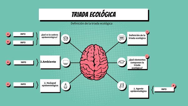 Ejemplos sobre cómo se usa la triada ecológica: En la diabetes: Agente: azúcar Ambiente: bebidas azucaradas Huésped: ser humano En la gripe: Agente: virus de la gripe Ambiente: animal Huésped: ser humano