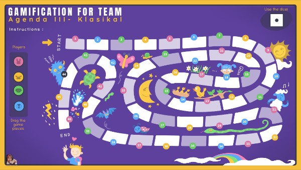 Ada challenge di setiap angka yang harus dijawab/dilaksanakan oleh kelompok. Fasilitator menentukan terpenuhi/tidaknya challenge. Jika terpenuhi/terjawab, kelompok mendapat reward maju 3 langkah, namun jika tidak maka diberi sanksi mundur 3 langkah.
